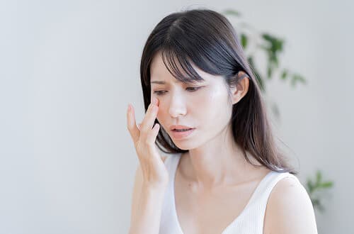 花粉症やアトピーなどで、目を擦るクセがある人も要注意です。肌の奥の組織がダメージを受け、深いシワにつながるリスクがあります。肌を擦らない意識を持ち、摩擦を極力減らすことが大切です。