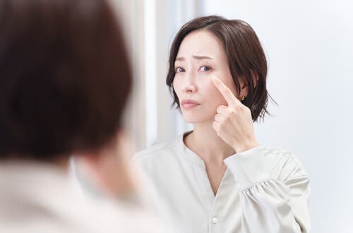 目の下にシワがあることで、顔全体の印象が一気に変わってしまうことがあります。特に目元は人の視線が集まりやすいため、わずかなシワでも目立ちやすいです。目の下のシワに悩む人が感じやすい代表的な悩みとして、以下の3つが挙げられます。