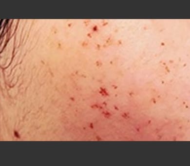 - A 症状によって、輪ゴムでパチパチと弾かれるような痛みがある場合がございます。ホクロやしみ、そばかすなどの色素のある部分は多少痛みが強くなりますが、我慢できる程度ですのでご安心ください。痛みに弱い方は、カウンセリング時に医師にご相談ください。