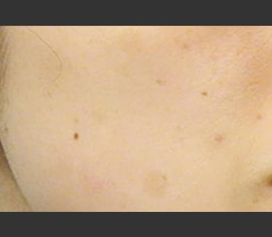 - A 治療2~3日後、反応の良い部分のそばかす、シミが濃くなり、少し浮き出た様な状態になります。(「黒浮き」と呼ばれます)その浮き出たようなそばかす、シミは7~10日で自然に剥がれてきます。赤み、ニキビに関しては治療を繰り返していく度に赤みは徐々に薄くなり、ニキビは徐々にできにくい肌質になっていきます。