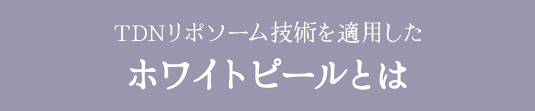 ホワイトピールに適用された「TDNテクノロジー」とは、大きい分子量を1μm以下の二重構造膜(リポソーム)にすることで、皮膚深部まで有効成分を浸透させることを可能にした特殊技術のことです。