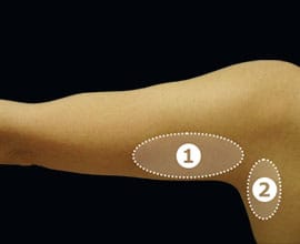 ノースリーブが似合う腕にするには、ブラ上部分も一緒に行うと、より腕がほっそりと長く見えるようになります。