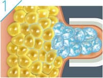 「脂肪細胞は体内の他組織よりも低温に弱い」という性質に着目し、皮膚や血管などにはダメージを与えずに脂肪細胞のみを冷却し、体外への排出を促します。