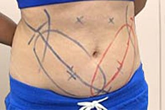 カウンセリングで決めた理想のボディラインをもとに、施術部位にマーキングをします。