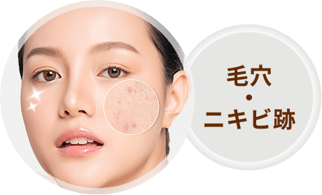 ニキビ跡、小ジワ、毛穴の開きを改善しハリのある若々しいお肌へ